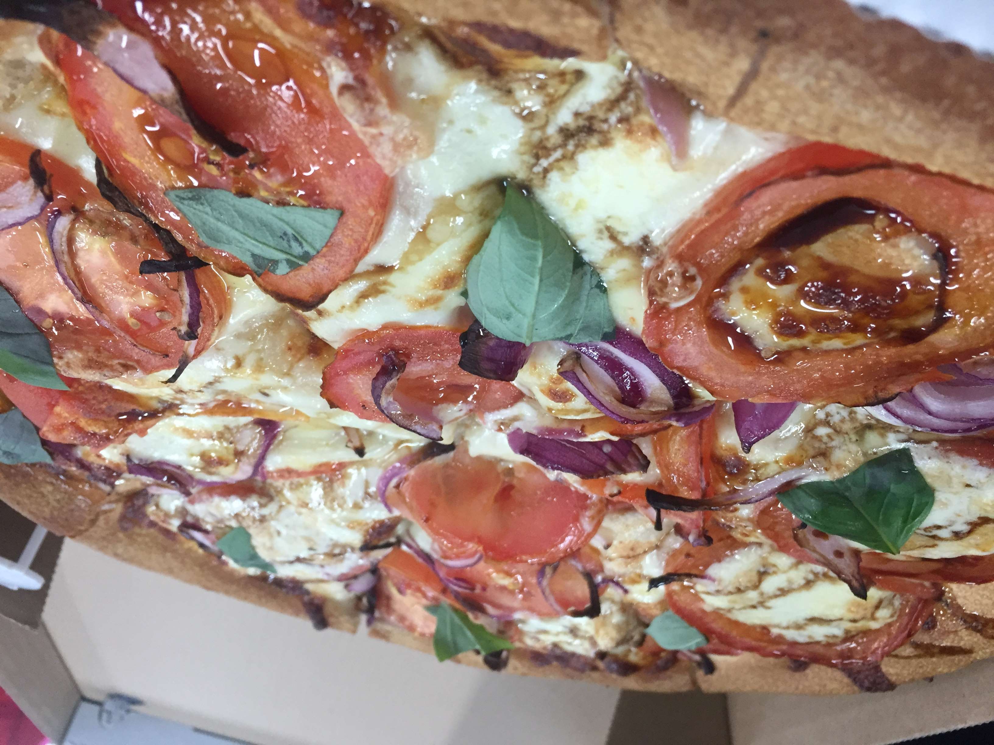 Cheese, onion, sliced tomato, buffalo mozzarella, drizzled with a balsamic glaze and olive oil.Choose one